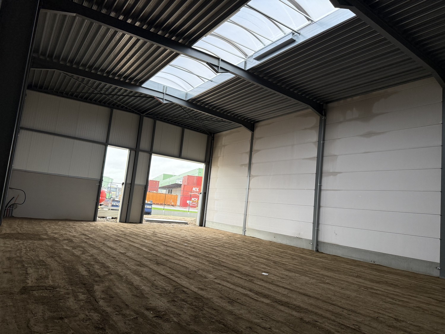 Na afronding van de dakdichtingswerken, inclusief lichtstraten en rookluiken, is het tijd om binnenin alles klaar te leggen voor het storten van de polybetonvloeren. De binnenriolering is zo goed als afgewerkt, zodat we deze week nog kunnen starten met het openleggen van vloerisolatie en wapeningsnetten, op de net genivelleerde uitvullingslaag.